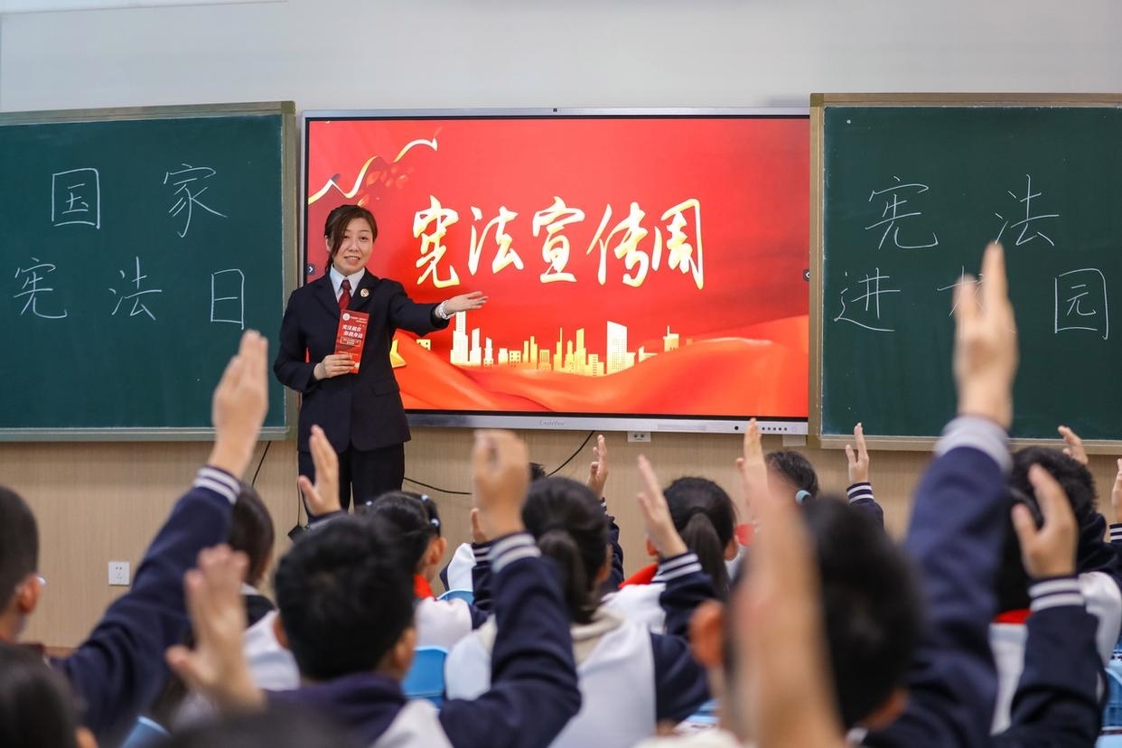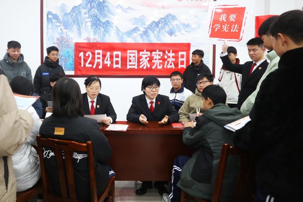 12月3日,山東省棗莊市市中區(qū)人民法院組織法官走進校園,開展主題宣傳活動,向學生普及憲法知識、宣傳法治觀念、弘揚憲法精神。(工人日報通訊員 孫中喆 攝)