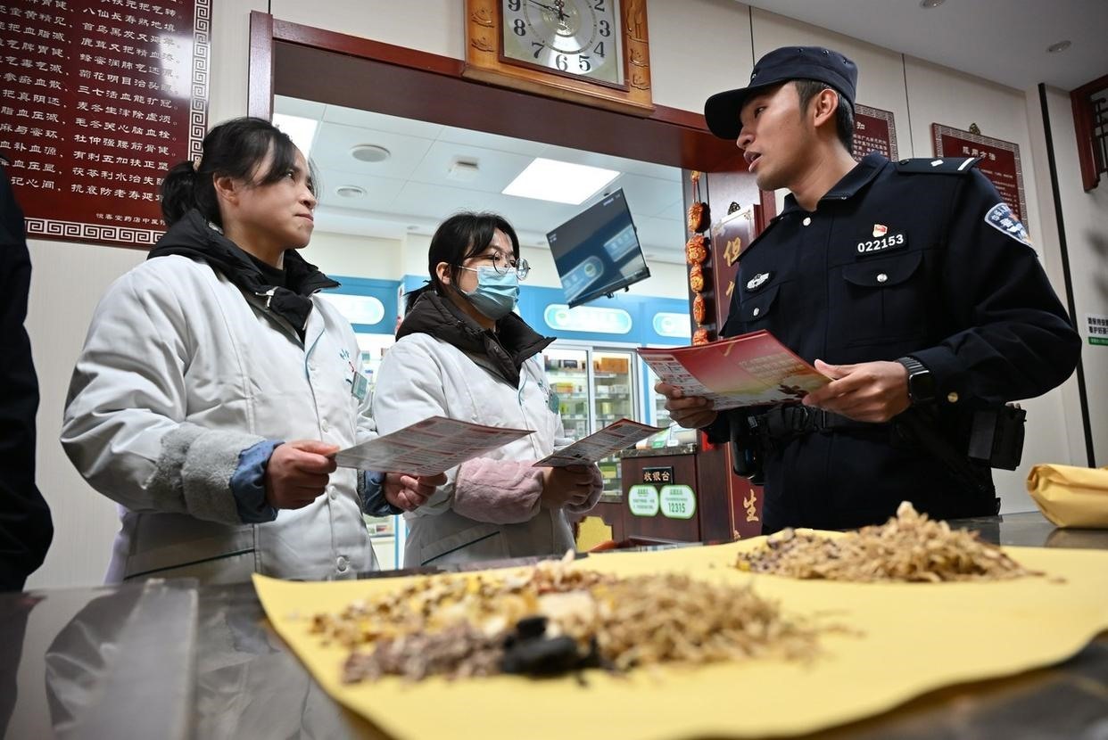 12月4日,安徽省當涂縣公安局姑孰派出所民警走街串巷開展法治宣傳活動。(工人日報通訊員 衛(wèi)學超 攝)