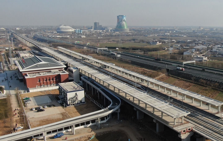 2025年12月26日,從延安開(kāi)往西安的C9339次列車駛過(guò)富平南站(無(wú)人機(jī)照片)。新華社記者 李一博 攝