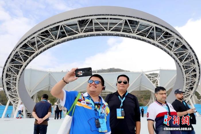 1月19日,第六屆亞洲沙灘運(yùn)動(dòng)會(huì)世界媒體大會(huì)暨世界轉(zhuǎn)播商大會(huì)在海南三亞舉行。圖為國(guó)際記者參訪三亞天涯海角游覽區(qū)亞沙公園。(第六屆亞洲沙灘運(yùn)動(dòng)會(huì)執(zhí)委會(huì) 供圖)