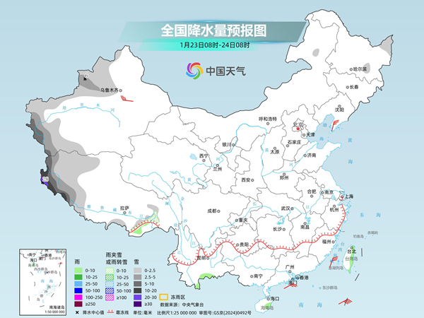 中央氣象臺預(yù)計,今天,新疆南疆西部山區(qū)、西藏西部等地部分地區(qū)有小到中雪,其中,新疆南疆西部山區(qū)部分地區(qū)有大到暴雪。湖南南部、廣西西北部等地局地有凍雨。云南東南部、廣西中東部、福建中部、臺灣島中東部等地部分地區(qū)有小雨,其中,臺灣島東部局地有中雨。