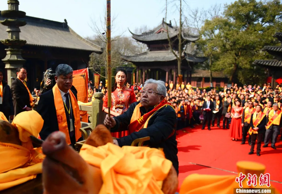 2016年2月25日,農(nóng)歷正月十八,“丙申元宵錢王祭”在浙江省杭州市錢王祠舉行。錢氏后裔按中國(guó)傳統(tǒng)禮制,祭拜錢氏先賢,祈福國(guó)運(yùn)昌盛。中新社記者 李晨韻 攝