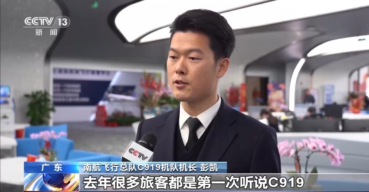 南航飛行總隊C919機隊機長 彭凱:去年很多旅客都是第一次聽說C919,今年可能有些不一樣,很多旅客已經主動選乘去拍照打卡這個機型了。