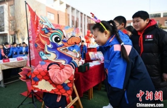 3月11日,學(xué)生們舞龍,感受傳統(tǒng)文化魅力。中新網(wǎng)記者 翟羽佳 攝