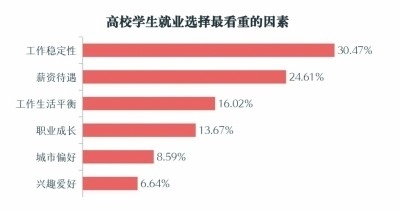 對我國東、中、西部地區(qū)7個省區(qū)市的14所本科院校、4所??圃盒?,覆蓋研究生、本科生、??粕惾后w,隨機抽樣的1829份調查問卷顯示,除工作穩(wěn)定性、薪資待遇外,工作生活平衡、職業(yè)成長、所在城市、興趣愛好等,也是高校學生就業(yè)選擇時看重的因素。
