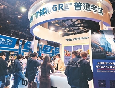 托福和GRE考試展臺(tái)前咨詢(xún)情況。
