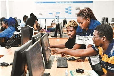 2024年9月,加納學(xué)生在日照職業(yè)技術(shù)學(xué)院智慧建造中心進(jìn)行建筑軟件繪圖練習(xí)。