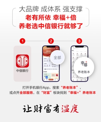 面對(duì)萬(wàn)億規(guī)模個(gè)人養(yǎng)老金新藍(lán)海,銀行、基金、保險(xiǎn)等各類型金融機(jī)構(gòu),正加速布局。作為國(guó)內(nèi)最早推出年長(zhǎng)客戶專屬服務(wù)的商業(yè)銀行,中信銀行始終關(guān)注并積極落實(shí)“應(yīng)對(duì)人口老齡化”的國(guó)家戰(zhàn)略,打造了包含“一個(gè)賬戶、一套產(chǎn)品、一個(gè)賬本、一套服務(wù)、一支隊(duì)伍、一份報(bào)告”六大支撐的養(yǎng)老金融服務(wù)體系,并推出“幸福+”養(yǎng)老賬本一站式養(yǎng)老金融服務(wù)平臺(tái),以實(shí)際行動(dòng)響應(yīng)國(guó)家號(hào)召、履行社會(huì)責(zé)任、助力第三支柱個(gè)人養(yǎng)老金制度實(shí)施落地。