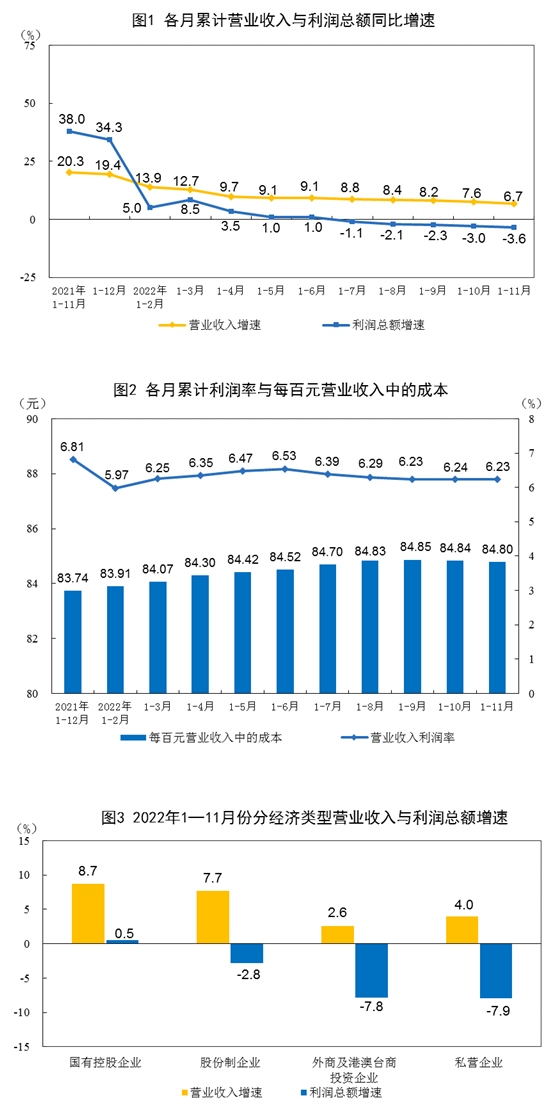 國(guó)家統(tǒng)計(jì)局工業(yè)司高級(jí)統(tǒng)計(jì)師朱虹表示,11月份,受疫情反彈和需求不足等因素影響,工業(yè)生產(chǎn)有所放緩,企業(yè)經(jīng)營(yíng)壓力加大,但利潤(rùn)結(jié)構(gòu)持續(xù)改善。具體來(lái)看,1—11月份工業(yè)企業(yè)效益狀況主要呈現(xiàn)以下特點(diǎn):