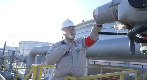 現(xiàn)場(chǎng)操作人員開(kāi)啟接卸原油裝置。徐秋萍攝