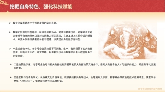在數(shù)字化方面,《報(bào)告》提到,數(shù)字化發(fā)展與轉(zhuǎn)型絕非一味地追逐新熱點(diǎn)、簡(jiǎn)單地套用技術(shù)。老字號(hào)企業(yè)可以著眼于自身的特色以及對(duì)應(yīng)消費(fèi)人群的需求,在此基礎(chǔ)上匹配合適的新技術(shù),來(lái)充分改善消費(fèi)者的體驗(yàn)與觀感,以實(shí)現(xiàn)自身的數(shù)字化轉(zhuǎn)型。