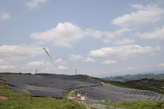 在湘、桂、粵三省交界的都龐、萌諸兩嶺余脈之間,喀斯特地貌帶來了千姿百態(tài)的自然奇景。四面環(huán)山、中間低落的地理環(huán)境,給風(fēng)光電站的建設(shè)創(chuàng)造了條件。