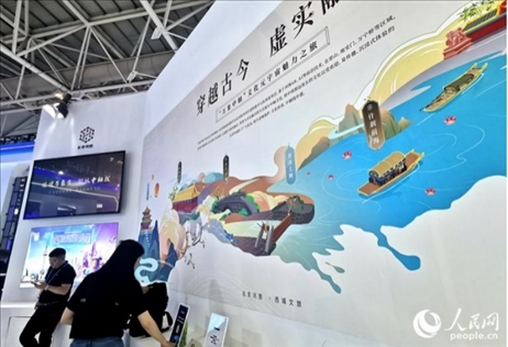 “我們對北京中軸線的場景進行了復刻,構筑了中軸線元宇宙,如果游客觀光北京中軸線上的打卡點,用手機掃描眼前的景色,就會出現(xiàn)現(xiàn)實與虛擬交織的場景,仿佛穿越古今,置身于千百年前的時空?!北本┖訄D公司工作人員陳頌在展會現(xiàn)場介紹說。