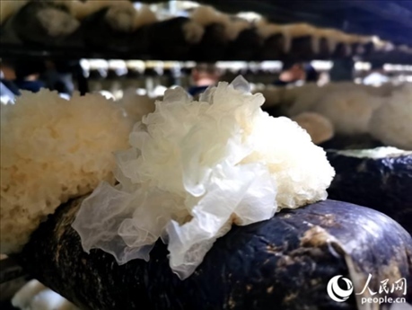 在福建省寧德市古田縣大橋鎮(zhèn)的一處標準化銀耳菇房,一個個整齊排列的架子上,培養(yǎng)基中長出一朵朵晶瑩的“白花”。由于銀耳需要避光、溫暖的生長環(huán)境,溫控智能化設備通過霧化、控溫等多項功能,模擬出銀耳在野生環(huán)境的生長條件。