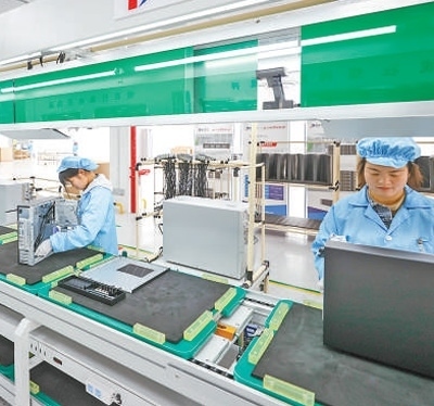 工人在畢節(jié)一家計算機(jī)生產(chǎn)企業(yè)產(chǎn)線上組裝產(chǎn)品。陳 曦攝(人民視覺)