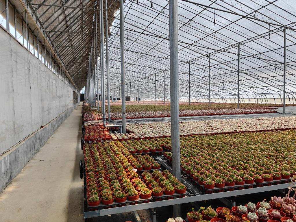 蘆李村的一處花卉大棚內(nèi),各種多肉植物整齊擺放。新華社記者 陳國(guó)峰 攝