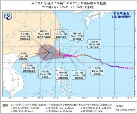 今年第11號(hào)臺(tái)風(fēng)“??蔽磥?lái)120小時(shí)路徑概率預(yù)報(bào)圖