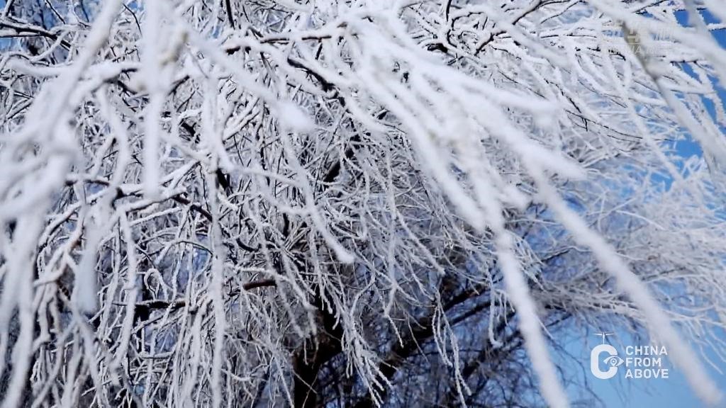 瞰中國|內(nèi)蒙古鄂爾多斯:霧凇景觀 美不勝收