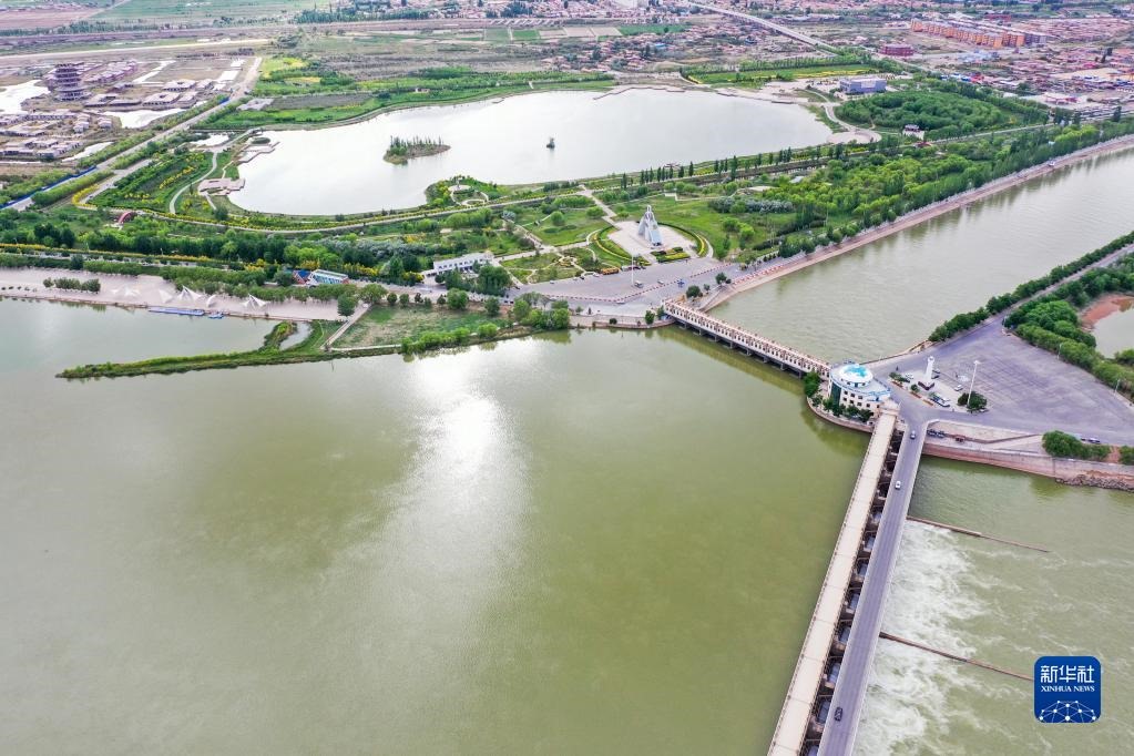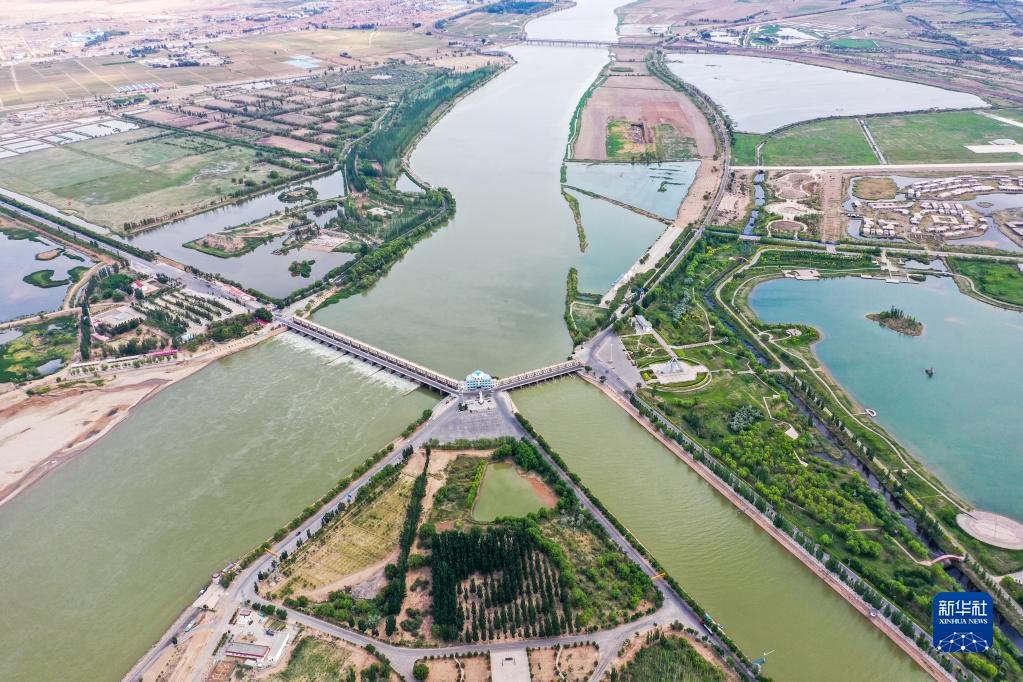 這是三盛公水利樞紐(無人機照片,6月6日攝)。