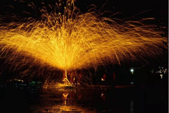 2. 打鐵花風(fēng)火輪:觀賞獨(dú)特的打鐵花表演,感受金屬與火焰的碰撞之美?! ?/p>