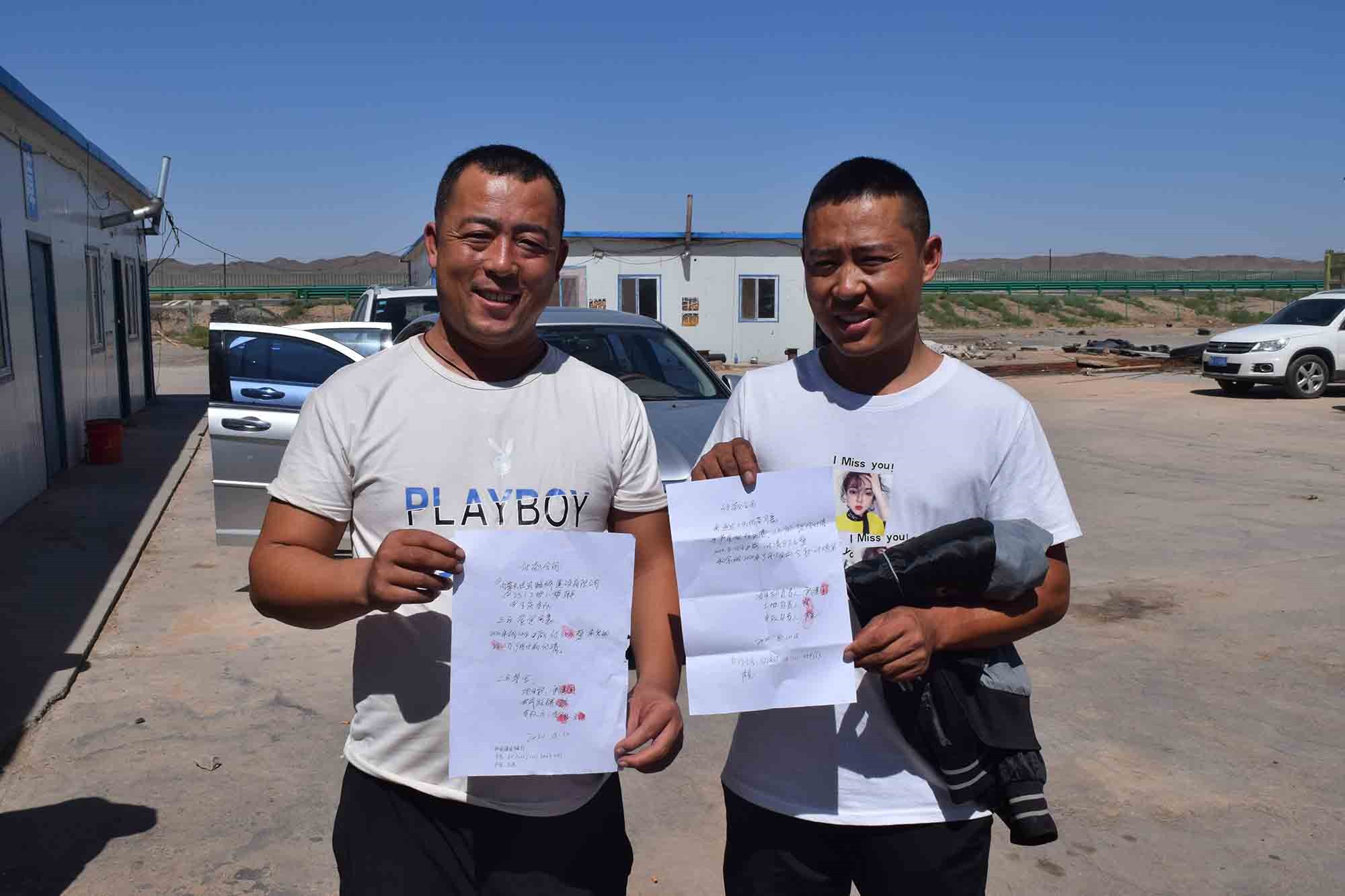拿到付款合同的工人露出欣慰的笑容