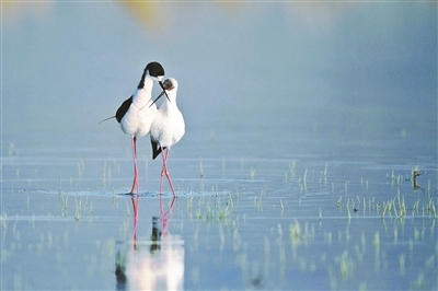 觀鳥者在密云區(qū)拍攝到的黑翅長腳鷸,系北京市2級保護(hù)鳥類