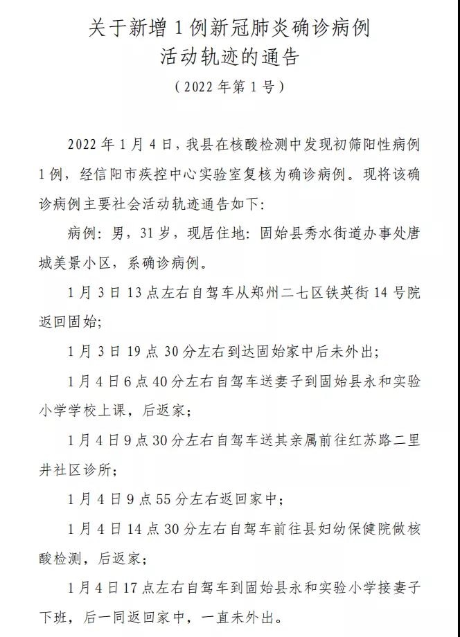 河南固始縣新增1例確診病例 活動(dòng)軌跡公布