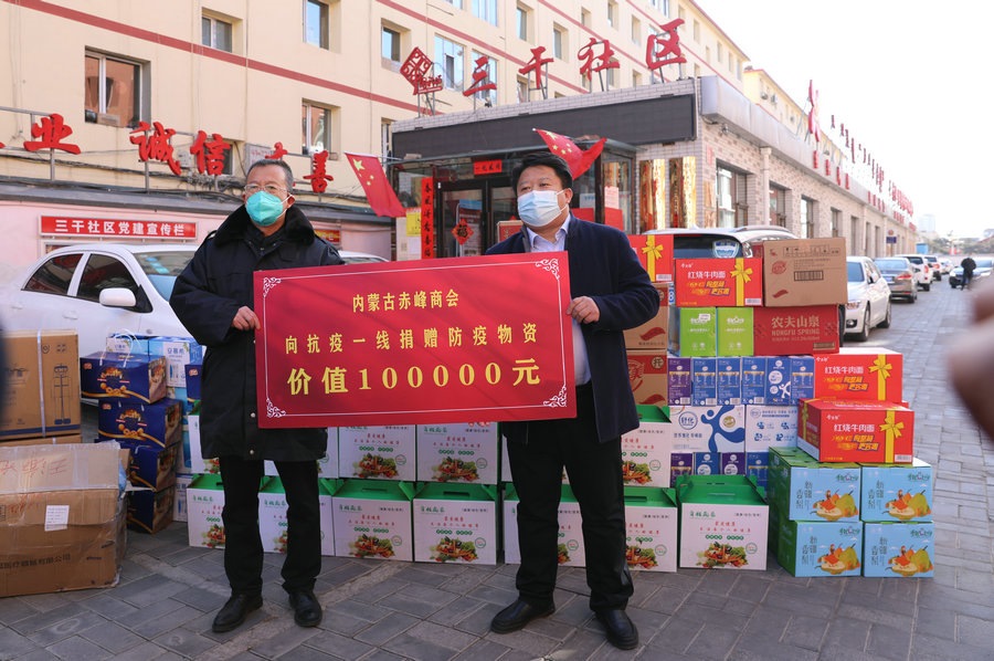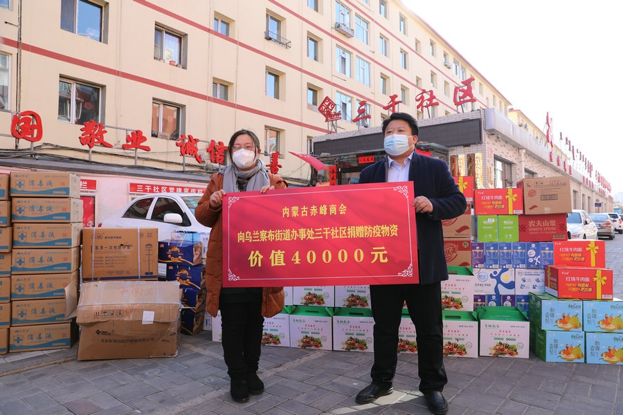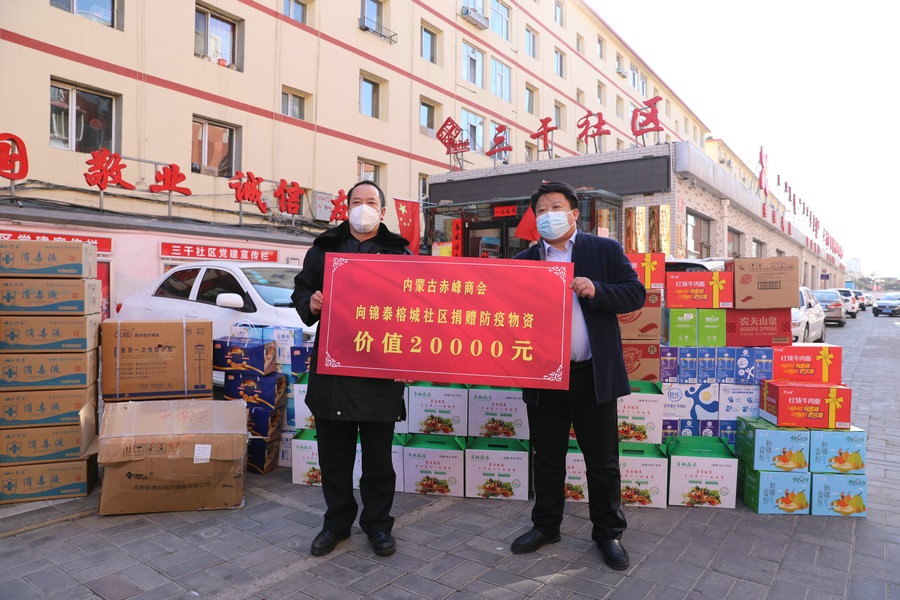 自疫情發(fā)生以來,內蒙古赤峰商會慰問了呼和浩特市公安局賽罕區(qū)分局昭烏達路派出所,向抗疫一線公安民警表達慰問,并為他們送去第一批價值1萬元的抗疫物資;商會執(zhí)行會長張學春向新城區(qū)城市管理局捐贈5萬元防疫物資,用于一線疫情防控;商會副會長單位內蒙古乾碩防水工程有限公司分別向呼和浩特市4個社區(qū)2個衛(wèi)生院捐贈了價值10萬元的防疫物資及生活必需品;商會聯(lián)合副秘書長單位蒙影影業(yè),走進玉泉區(qū)清泉街社區(qū),慰問抗疫一線工作人員,并為他們送去價值5000元的生活物資;商會聯(lián)合副會長單位友鵬實業(yè)集團,向回民區(qū)大慶路小學、伊利健康谷、東庫街社區(qū)、呼和浩特職業(yè)學院等防控一線捐贈價值10萬元的防疫物資。