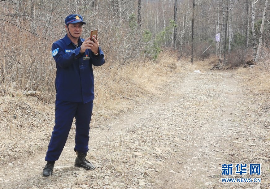 5月11日,57歲的森防瞭望員周桂波站在22米高的瞭望塔上,穿著棉襖棉褲頂著寒風瞭望、匯報、記錄。新華網(wǎng)發(fā)(欒維敬 攝)