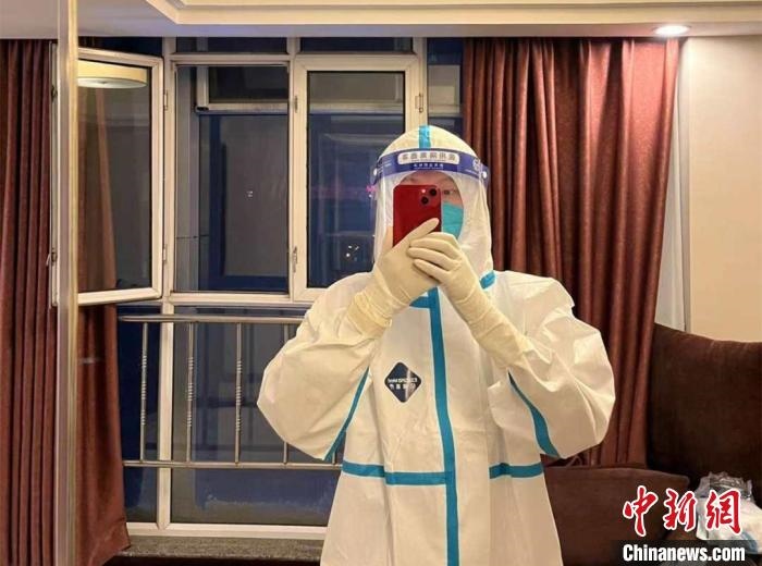 隔離期滿,郭佳煌選擇成為酒店防疫志愿者,工作時間是12點到24點?!爸虚g有4個小時休息,我不覺得辛苦,反而覺得很有意義,希望所有人都能夠團結起來,為抗擊疫情貢獻自己的力量?!惫鸦驼f。