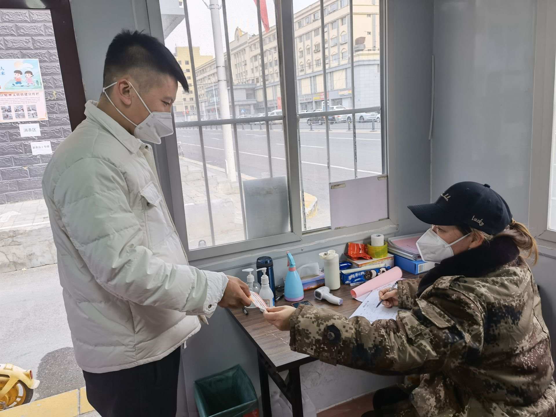 為給居民提供一個更放心的開放環(huán)境,在開放小區(qū)每個卡點、每個路口都有巡邏者,隨時提醒居民不能隨意進出不安全區(qū)域。小區(qū)門口還設(shè)置了物品接收緩沖區(qū),所有物品都要在這里統(tǒng)一消毒后錯峰領(lǐng)取。