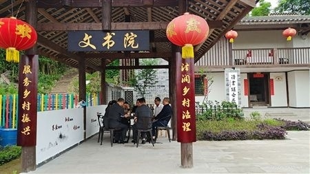 忠縣法院法官在鄉(xiāng)村振興法治工作站調(diào)解糾紛。