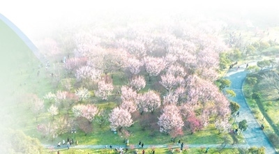 江蘇省揚(yáng)州市蜀岡西峰生態(tài)公園內(nèi),市民們?cè)谫p花游玩。 劉江瑞攝(人民視覺)