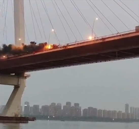 ·大貨車起火司機不畏危險駛離大橋,公交司機、消防聯(lián)手救援。