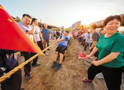 村民們進行拔河比賽。
