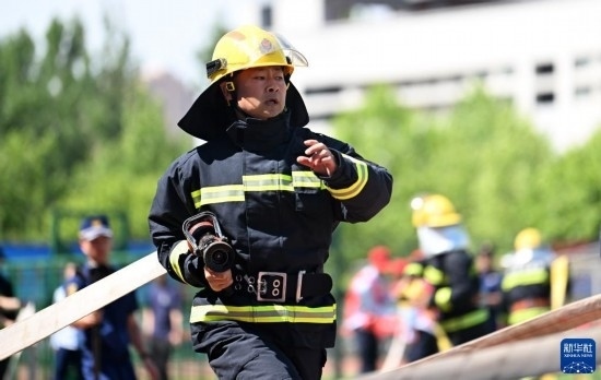 6月2日,微型消防站代表參加原地著裝加佩戴空氣呼吸器消防業(yè)務技能比武。