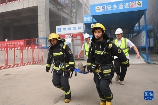 當(dāng)日,浙江省杭州市富陽(yáng)區(qū)“安全生產(chǎn)月”消防應(yīng)急演練在中建三局富陽(yáng)銀湖生物信息產(chǎn)業(yè)園項(xiàng)目工地啟動(dòng),現(xiàn)場(chǎng)進(jìn)行火災(zāi)撲救、人員施救等環(huán)節(jié)的演練,以提升安全生產(chǎn)應(yīng)急能力。