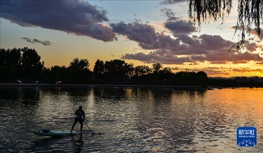 2023年6月10日,夕陽(yáng)下的什剎海。新華社記者 陳鐘昊 攝