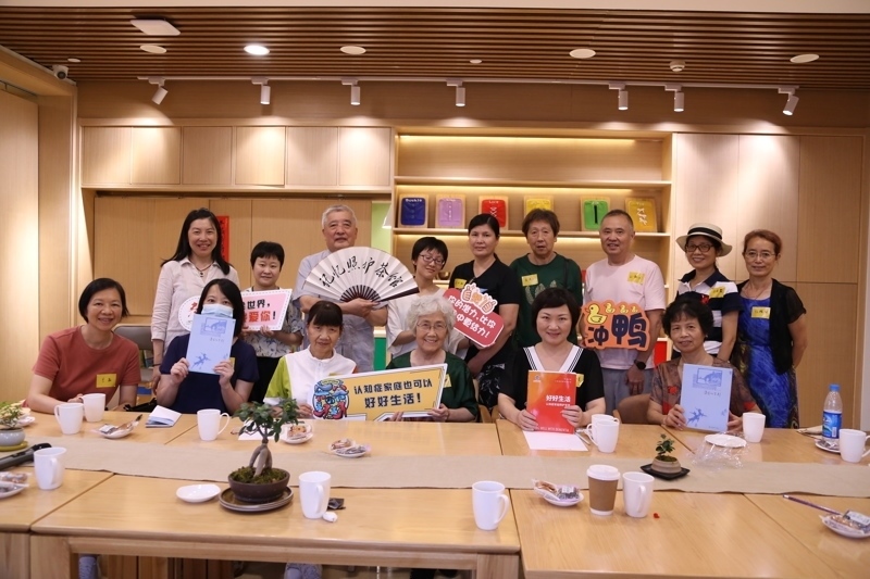 她希望能給他們提供彼此支持、交流經(jīng)驗的社交平臺。而她也漸漸發(fā)現(xiàn)最了解家屬需求的是他們自己。為什么不能由家屬自己來決定討論什么呢?于是,2020年,汪達民與顧春玲一拍即合,在延續(xù)國外“記憶咖啡館”理念的基礎(chǔ)上,開創(chuàng)了本土特色的認(rèn)知癥家屬互助平臺:照護茶館。畢竟,茶館就是熱鬧的、七嘴八舌的,人們來這里消遣娛樂,釋放壓力。在照護茶館里,家屬們既是掌柜也是茶客,分享各種照護信息,這也是認(rèn)知癥患者照護者們希望得以喘息的方式。