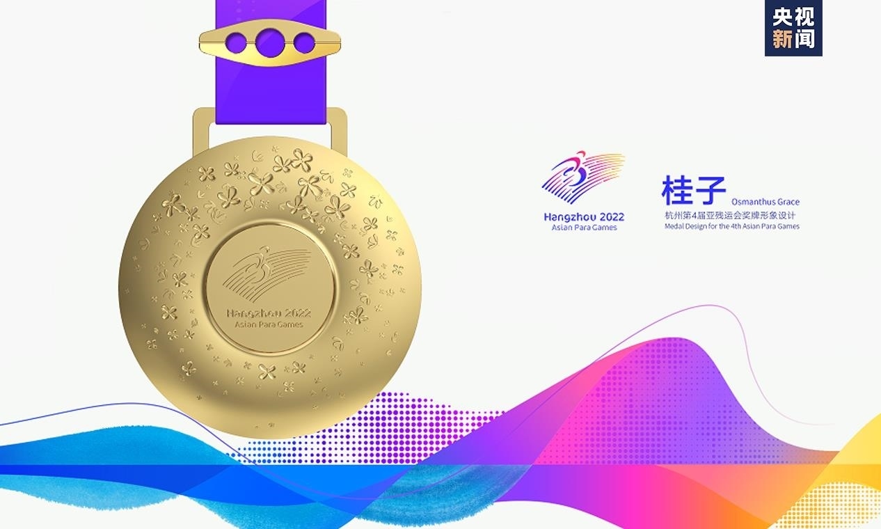 獎牌取名為“桂子”,源自描寫杭州的名句“山寺月中尋桂子”,寓含江南意境和浪漫色彩。系繼會徽“向前”,吉祥物“飛飛”,色彩系統(tǒng)“潤澤”,火炬“桂冠”后又一杭州亞殘運(yùn)會視覺形象體系的核心元素,是亞殘運(yùn)文化美學(xué)的重要表達(dá)。