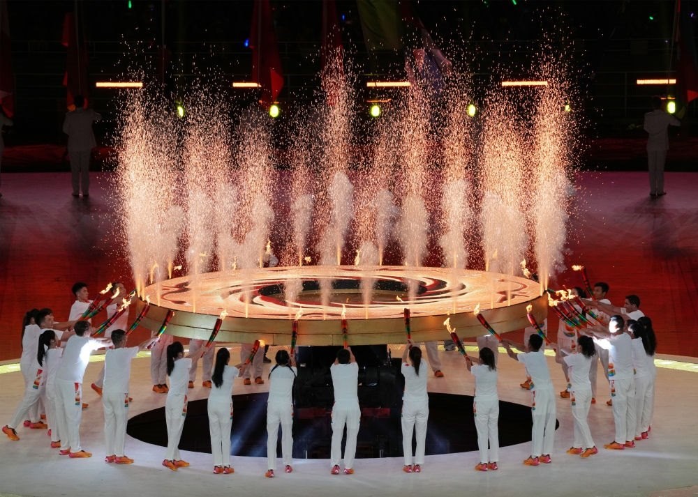 “太陽神鳥”圣火盤的點燃