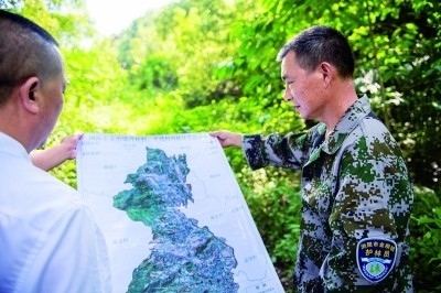 湖南省長(zhǎng)沙市瀏陽(yáng)市金剛鎮(zhèn)林長(zhǎng)制專(zhuān)職護(hù)林員在記錄古樹(shù)生長(zhǎng)情況。新華社發(fā)