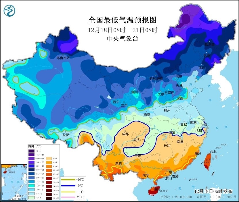 人民網(wǎng)北京12月18日電 (記者溫璐)據(jù)中央氣象臺網(wǎng)站消息,未來五天,我國大部地區(qū)氣溫持續(xù)偏低。預計12月18日8時至21日8時,新疆北部、西北地區(qū)中東部、內(nèi)蒙古、華北地區(qū)、東北地區(qū)、黃淮、江淮、江漢、江南北部、貴州等地部分地區(qū)日最低氣溫較歷史同期偏低5℃以上,其中西北地區(qū)東部、內(nèi)蒙古、華北地區(qū)、東北地區(qū)、黃淮中東部、江淮東部等地部分地區(qū)日最低氣溫較歷史同期偏低7℃以上,最低氣溫0℃線將位于貴州南部至江南北部一帶。中央氣象臺12月18日6時繼續(xù)發(fā)布低溫黃色預警。