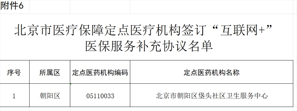 北京市朝陽區(qū)垡頭社區(qū)衛(wèi)生服務(wù)中心申請開展“互聯(lián)網(wǎng)+”醫(yī)保服務(wù),經(jīng)市、區(qū)醫(yī)保經(jīng)辦機構(gòu)審核并通過信息系統(tǒng)業(yè)務(wù)驗收,該定點醫(yī)療機構(gòu)符合“互聯(lián)網(wǎng)+”醫(yī)保服務(wù)條件,簽訂《<北京市基本醫(yī)療保險定點醫(yī)療機構(gòu)服務(wù)協(xié)議書>“互聯(lián)網(wǎng)+”醫(yī)保服務(wù)補充協(xié)議》,為參保人員提供北京市醫(yī)療保障“互聯(lián)網(wǎng)+”醫(yī)保服務(wù)(見附件6)。