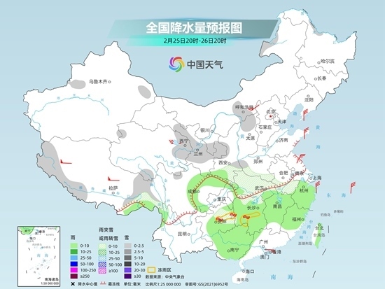 圖4 全國降水量預報圖(2月16日08時-17日08時)