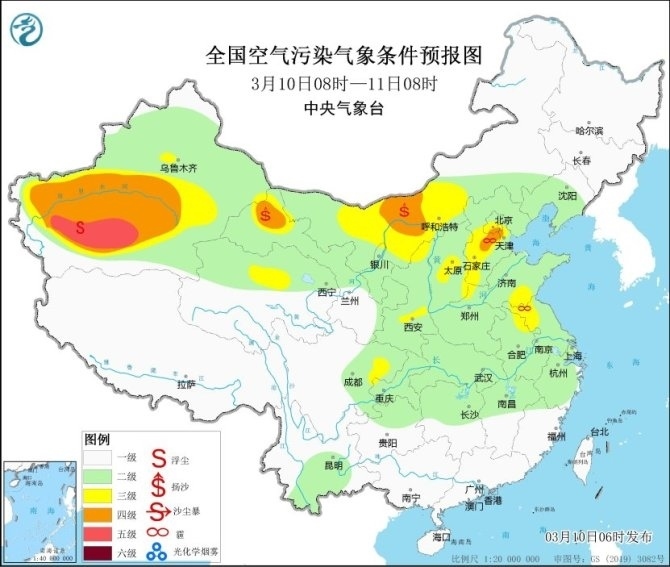 另外,受大風天氣影響,10日,內(nèi)蒙古中西部、寧夏北部、甘肅河西、青海北部等地的部分地區(qū)有揚沙或浮塵。請公眾戶外活動做好防風防沙措施,室內(nèi)關(guān)好門窗。