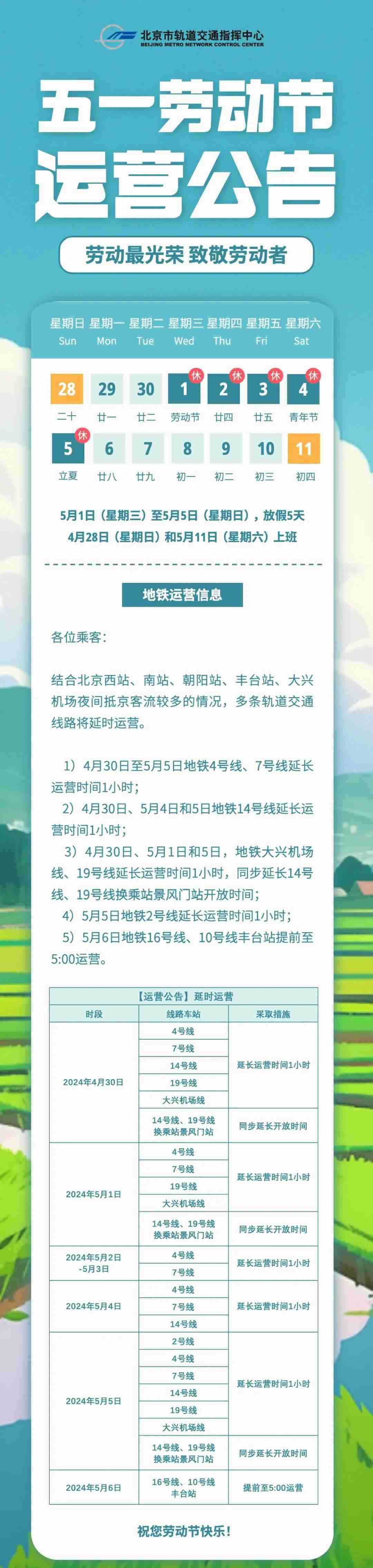 溫馨提示!“五一”假期北京這些地鐵調(diào)整運(yùn)營時間