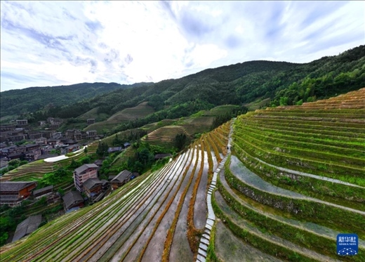 初夏時節(jié),廣西龍勝各族自治縣龍脊梯田景區(qū)內(nèi)2000多畝梯田生機盎然。