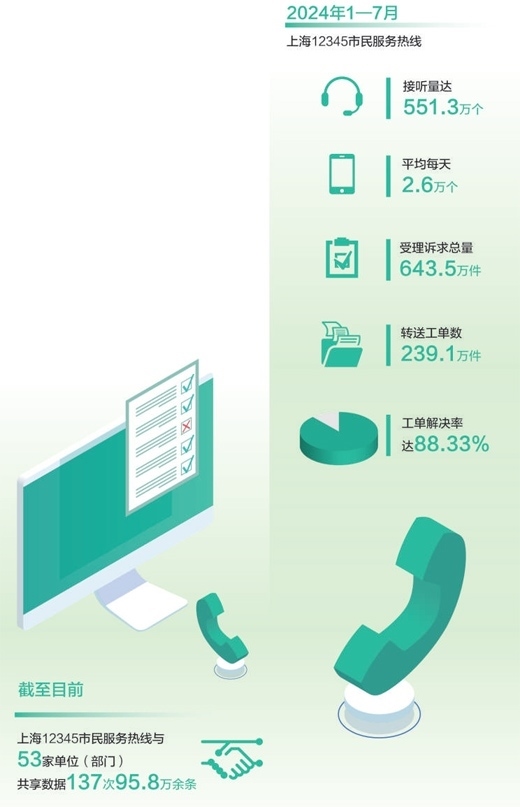 在上海,大多數(shù)市民都知道“有困難找‘12345’”——今年1—7月,上海12345市民服務(wù)熱線接聽量達(dá)551.3萬個,平均每天2.6萬個。