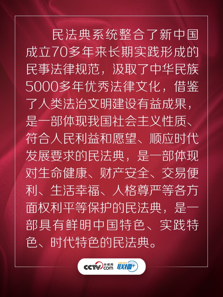 民法典回應(yīng)了人民的期待,充滿了以人民為中心的底色。央視網(wǎng)《聯(lián)播+》特梳理習(xí)近平總書記相關(guān)話語,與您一起學(xué)習(xí)感悟。